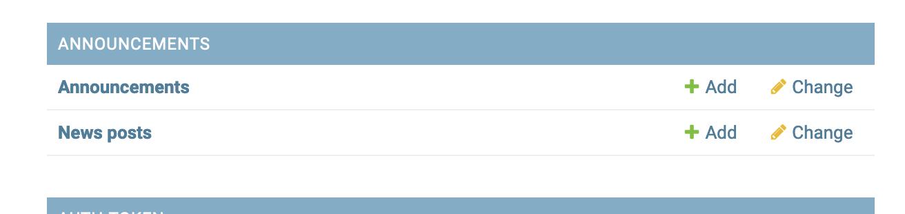For announcement, only the first announcement is read by the front page. For news, all objects are read as separate news. You can create and edit objects using the interface. Write the announcement and news using HTML to format the text, add links, and more: