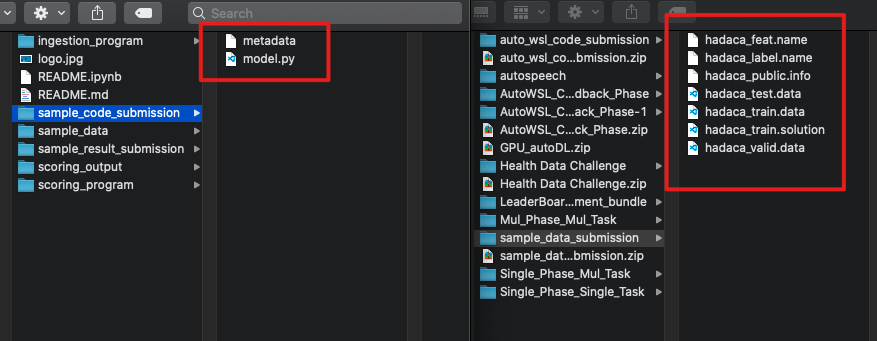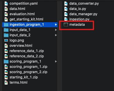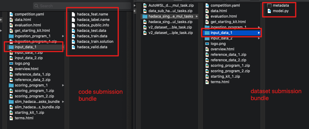 Therefore, when competition participants upload their dataset submission, the zip file must contain all the files shown on the right side of the picture above.