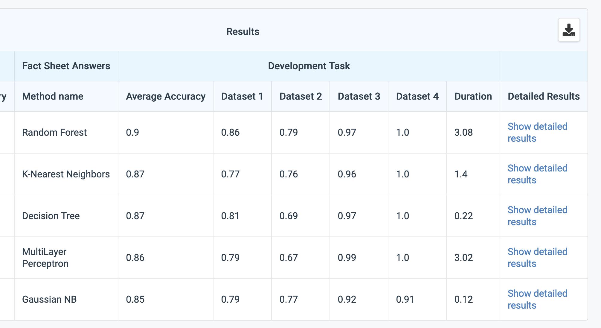 When the visualization is enabled, a link to the detailed results can be found on the leaderboard for each submission:
