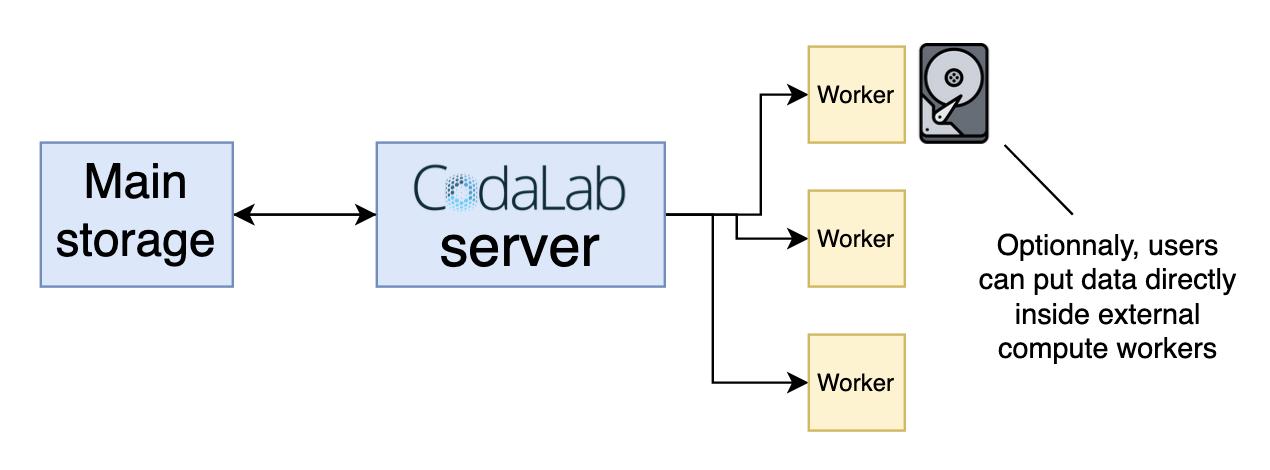 , is shared between the host (the compute worker) and the container running the submission (a new container is created for each submission). It is mounted inside the container as /app/data